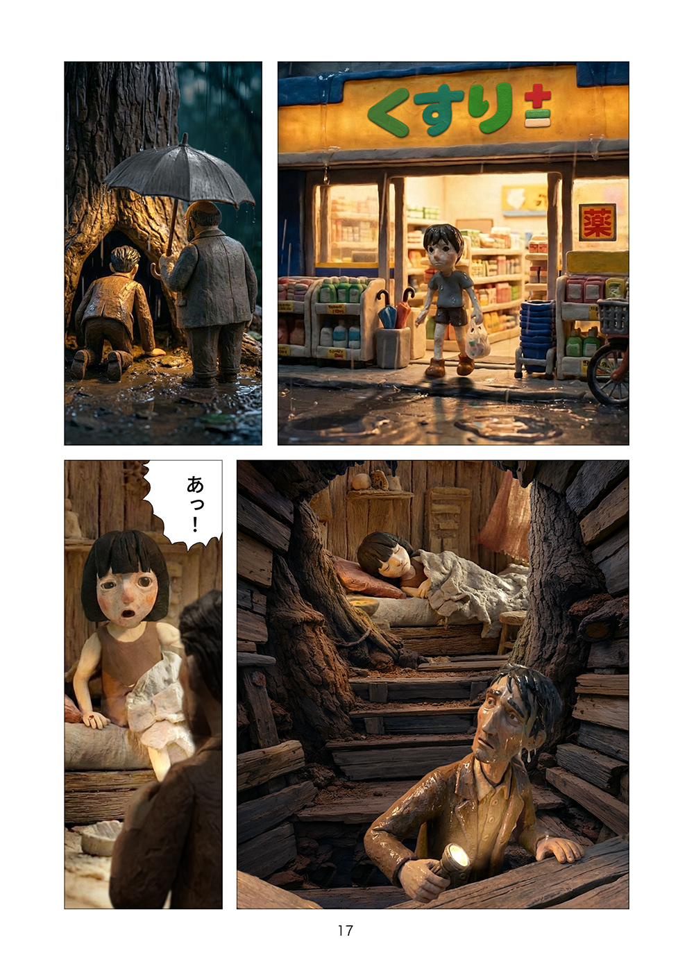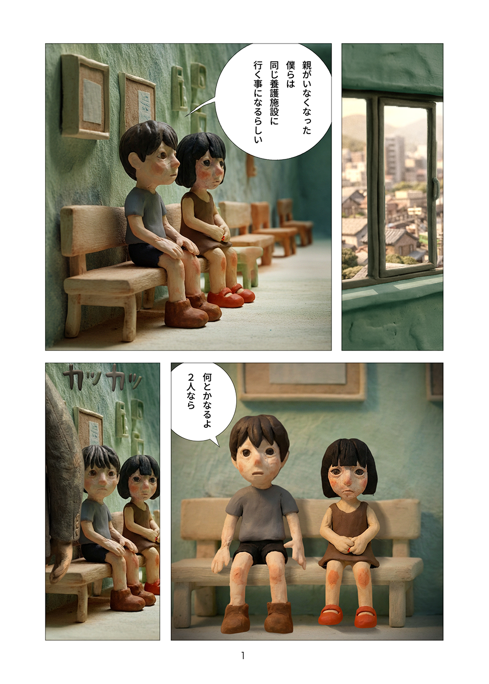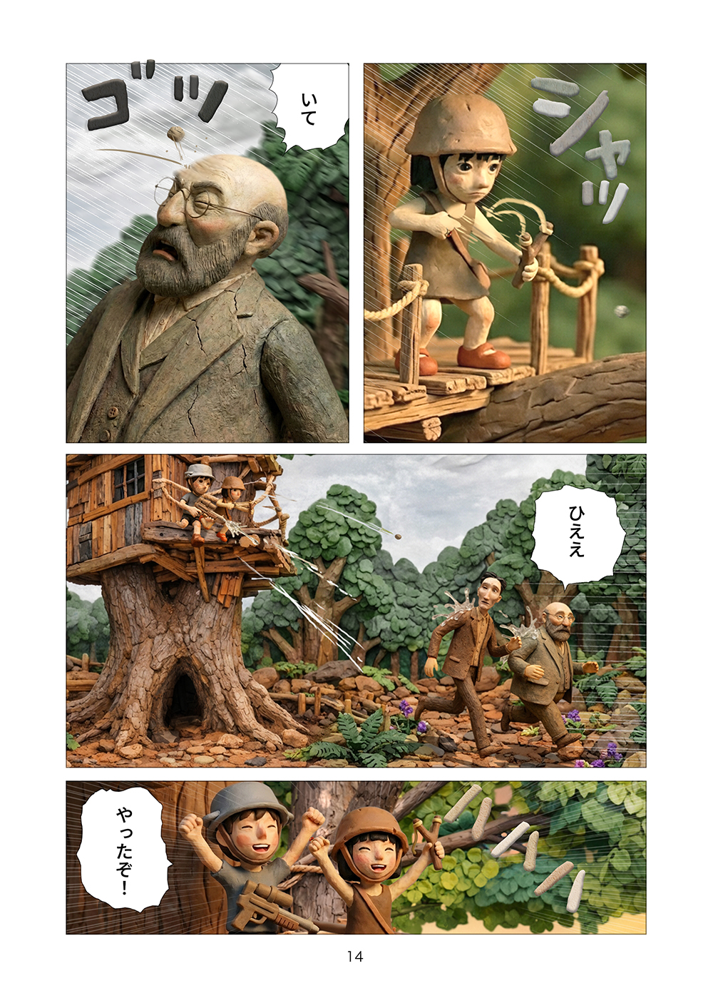 児童相談所から逃げ出した孤児の兄妹はツリーハウスを見つける。フルカラークレイ漫画。