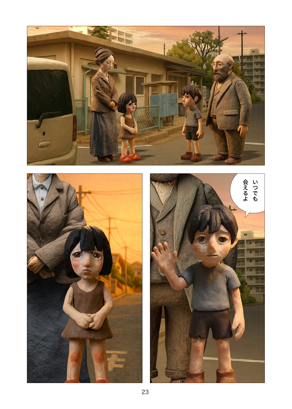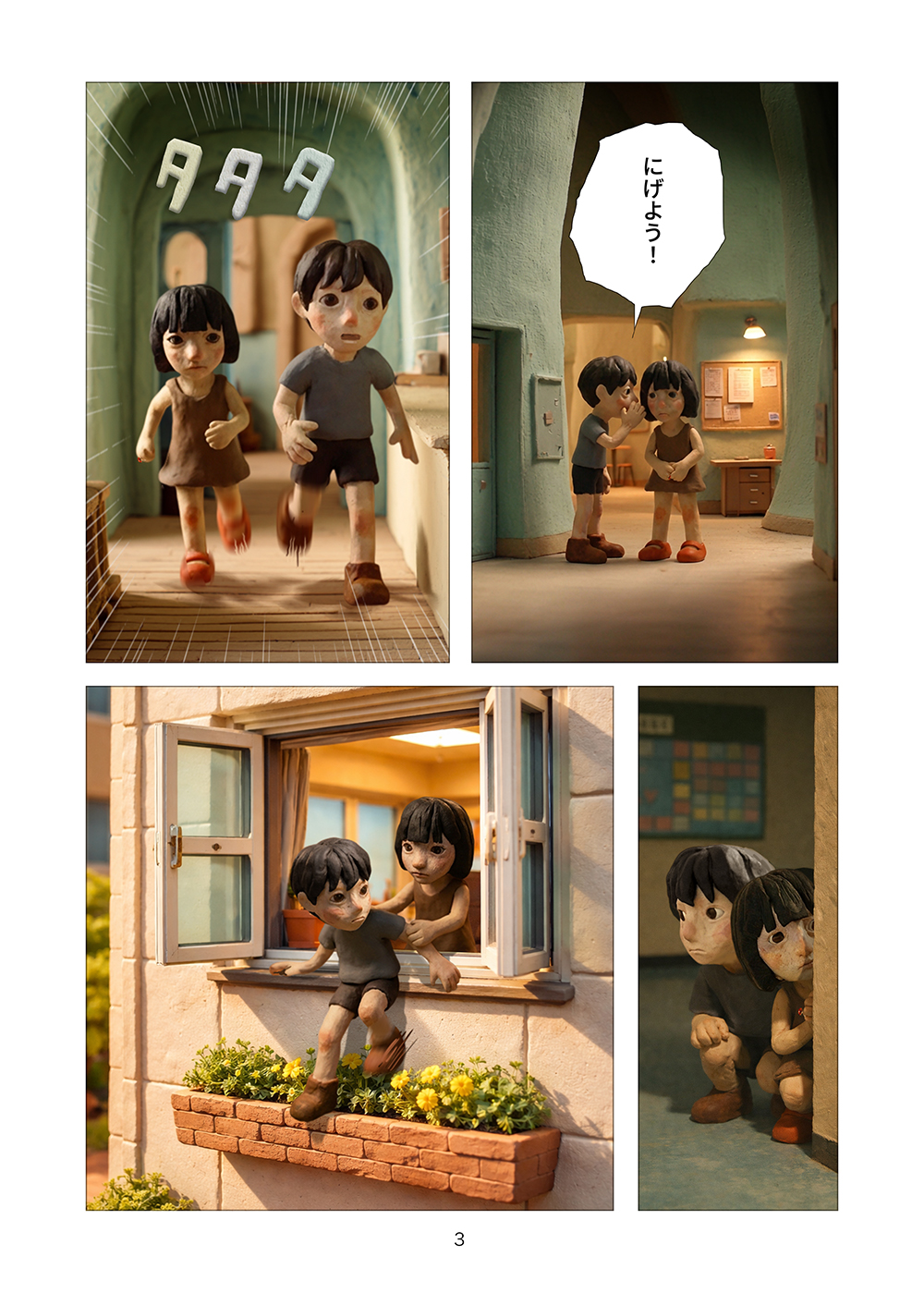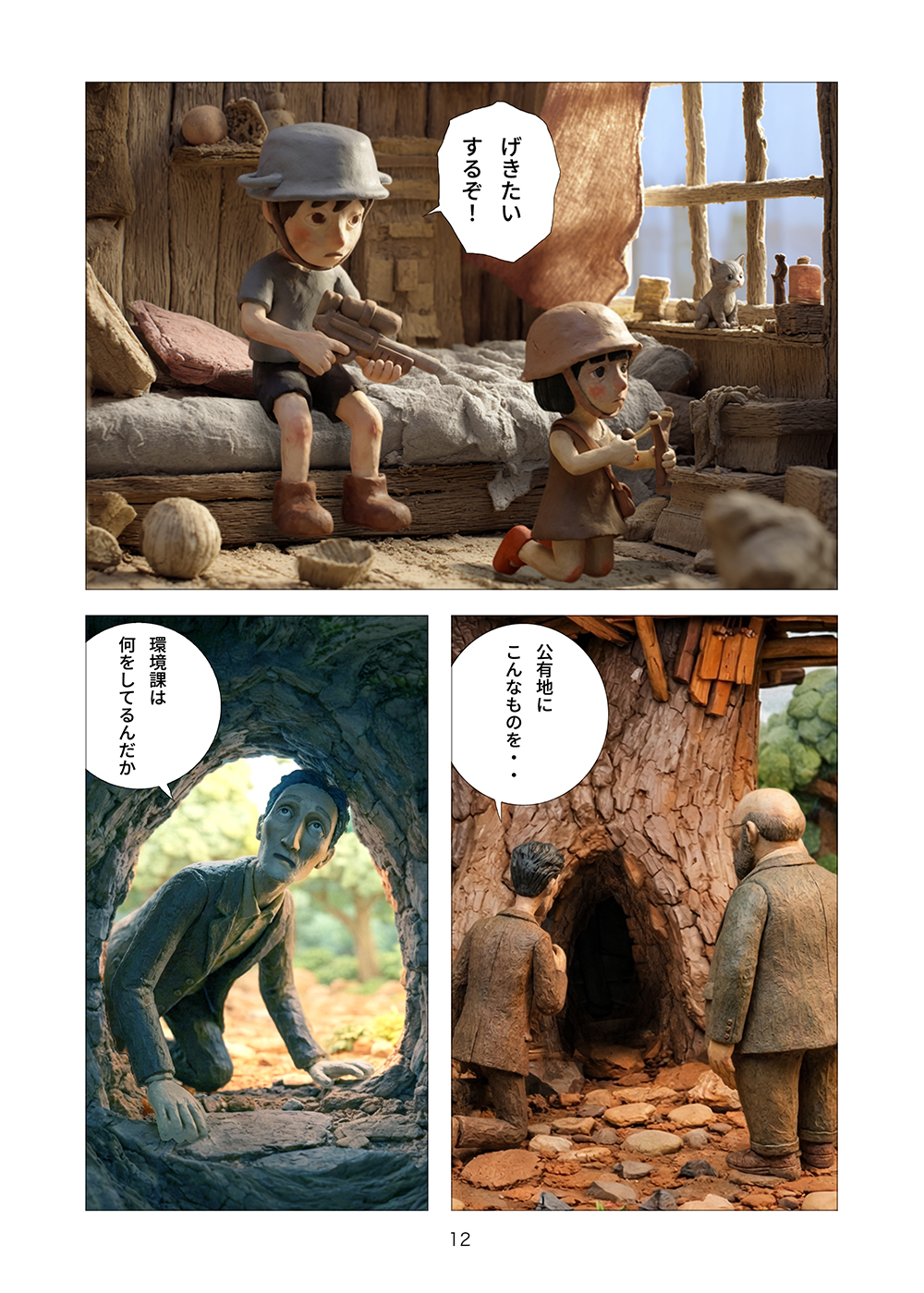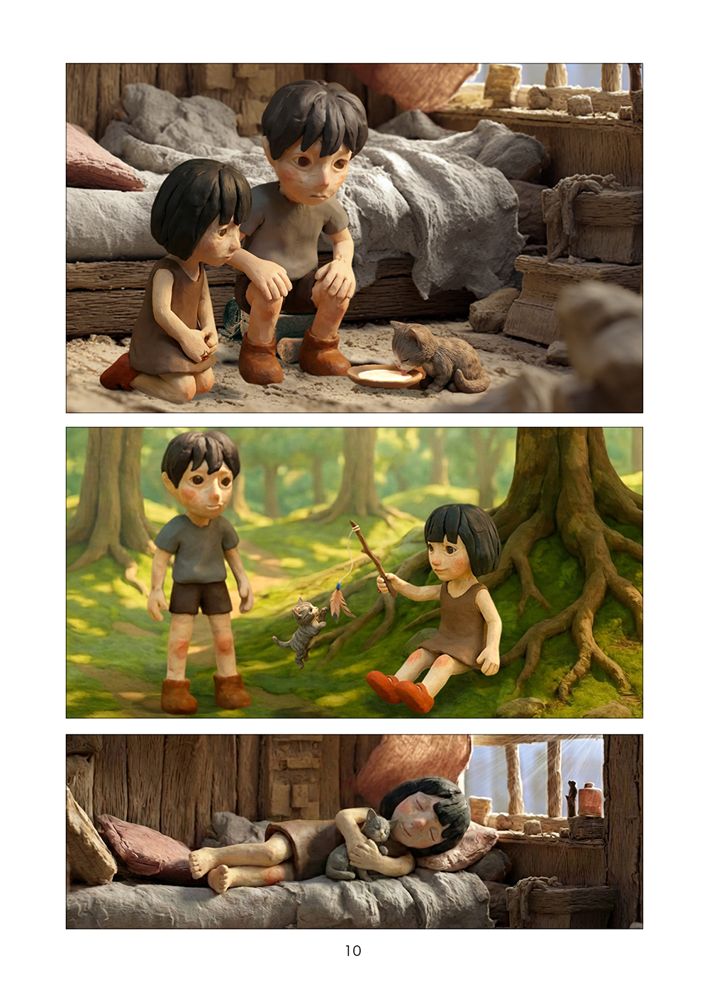 児童相談所から逃げ出した孤児の兄妹はツリーハウスを見つける。フルカラークレイ漫画。