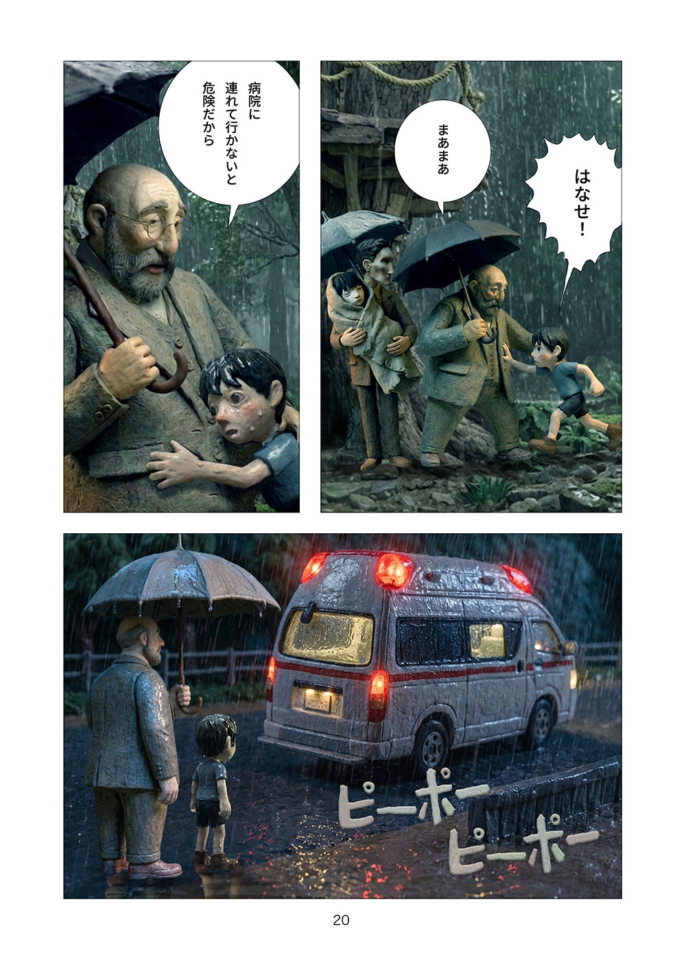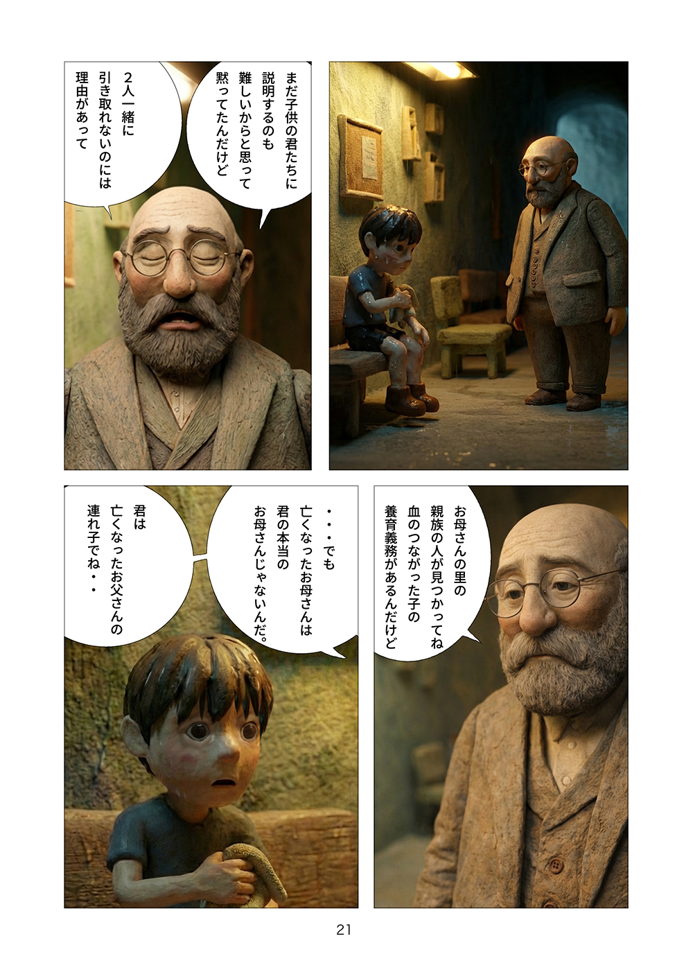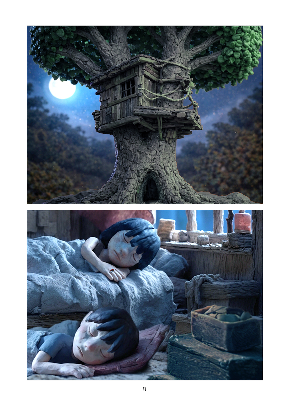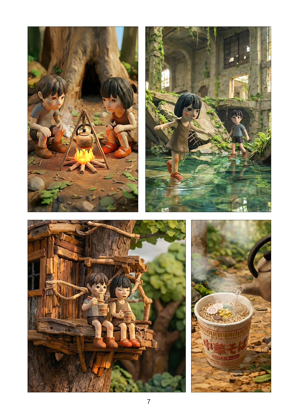 児童相談所から逃げ出した孤児の兄妹はツリーハウスを見つける。フルカラークレイ漫画。